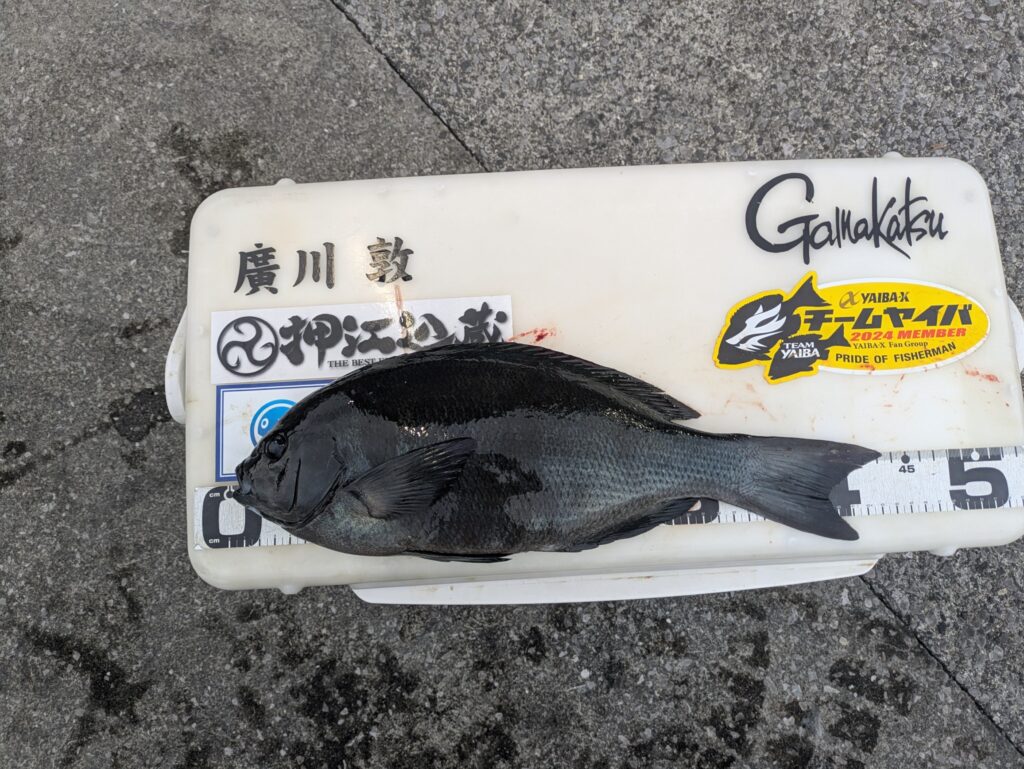 小型の尾長グレに苦労しましたが、この日の最大となる44cmの口太グレを釣ることができました